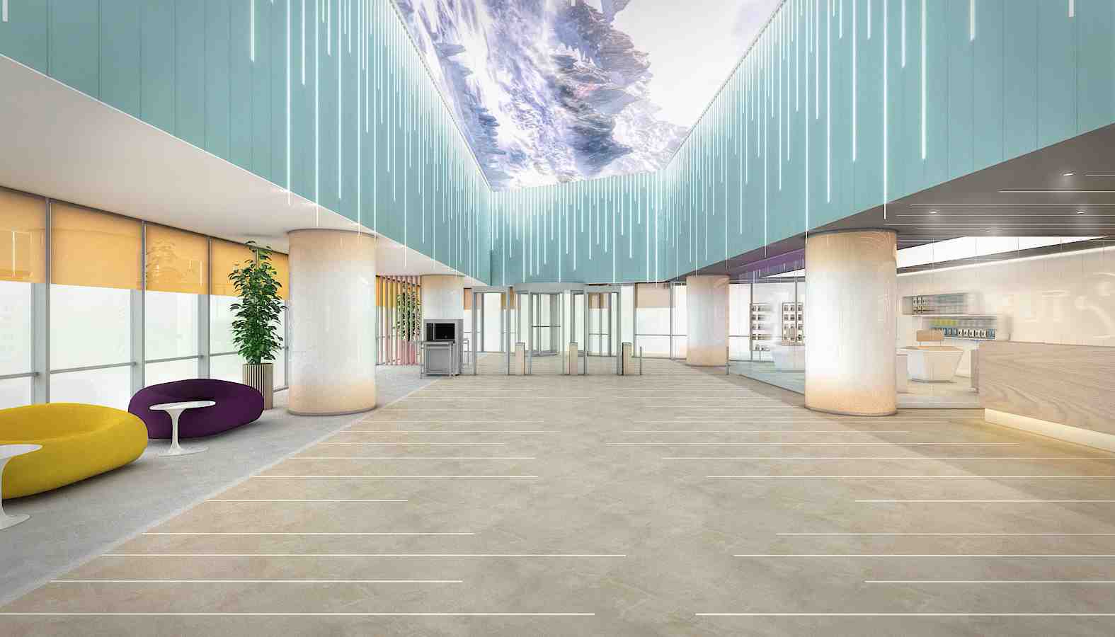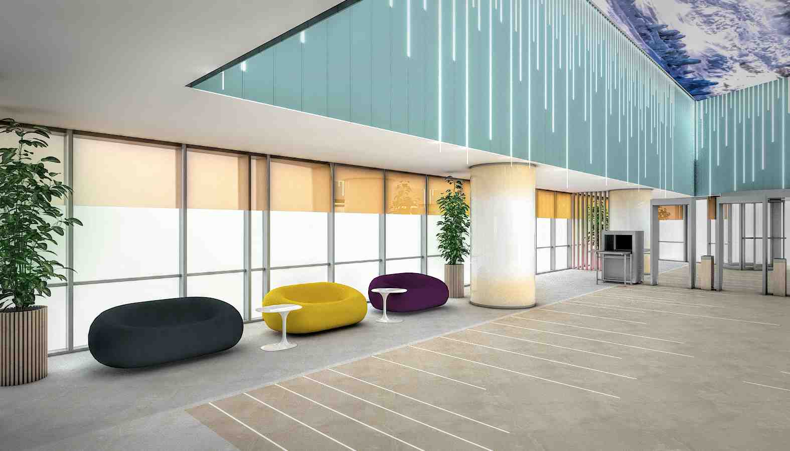 ürkiyenin uluslararası çok yönlü bir kurumsal firmanın genel müdürlük binasının giriş bölümü için hazırlanan tasarım önerisi. Galeri boşluğunun üzerinde bulunan video tavan, yan bölümlerde ve zeminde konumlandırılan ışık bandları ile tavandaki hareketi tüm mekana yayarak kullanıcıyı daha ilk andan itibaren etki almak hedeflenmiştir.